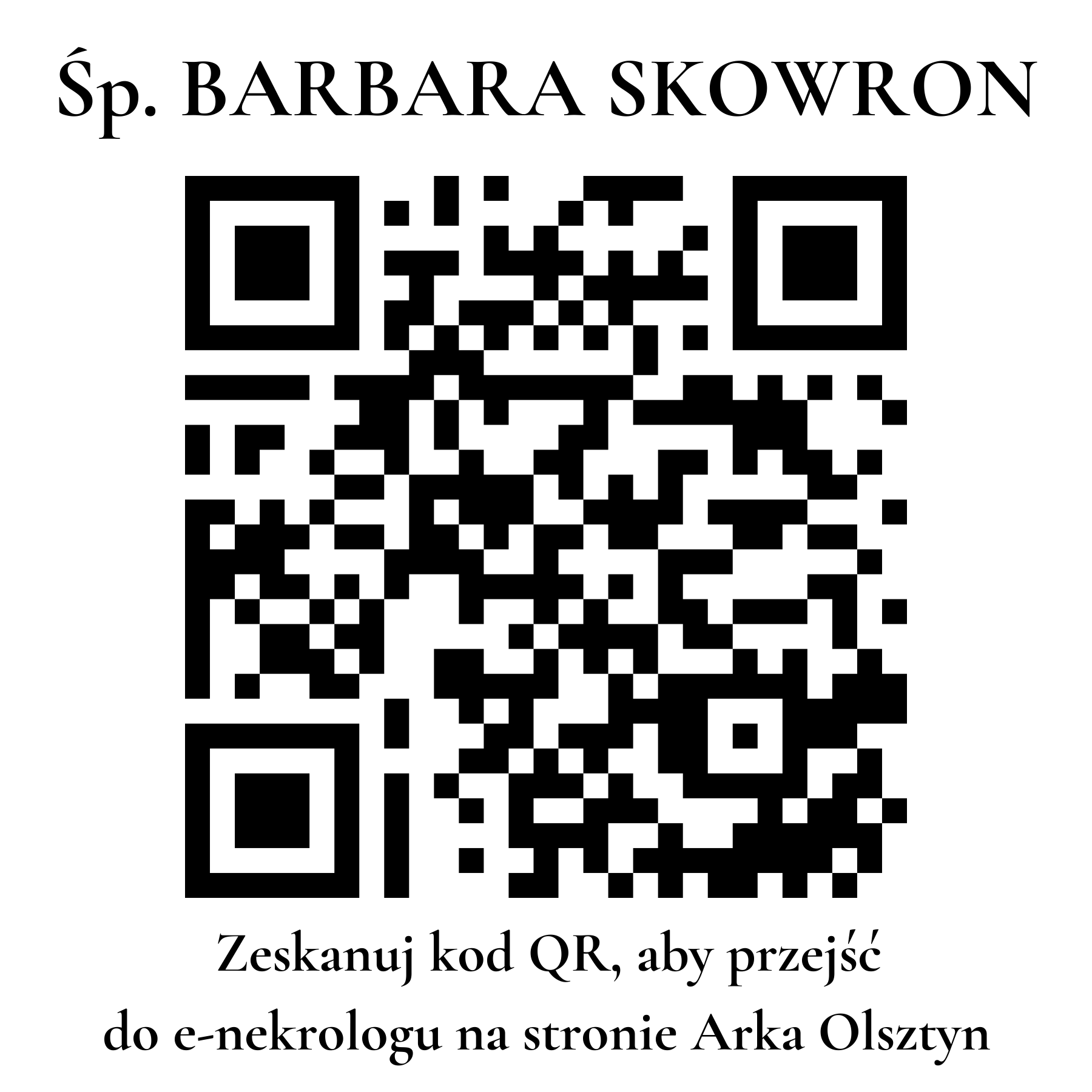 Z żalem informuję, że nie żyje BARBARA SKOWRON. Pogrzeb odbędzie się 08.11.2025. Lokalizacja: komunalny przy ul. . Więcej informacji na stronie https://arkaolsztyn.pl/nekrolog/barbara-skowron/