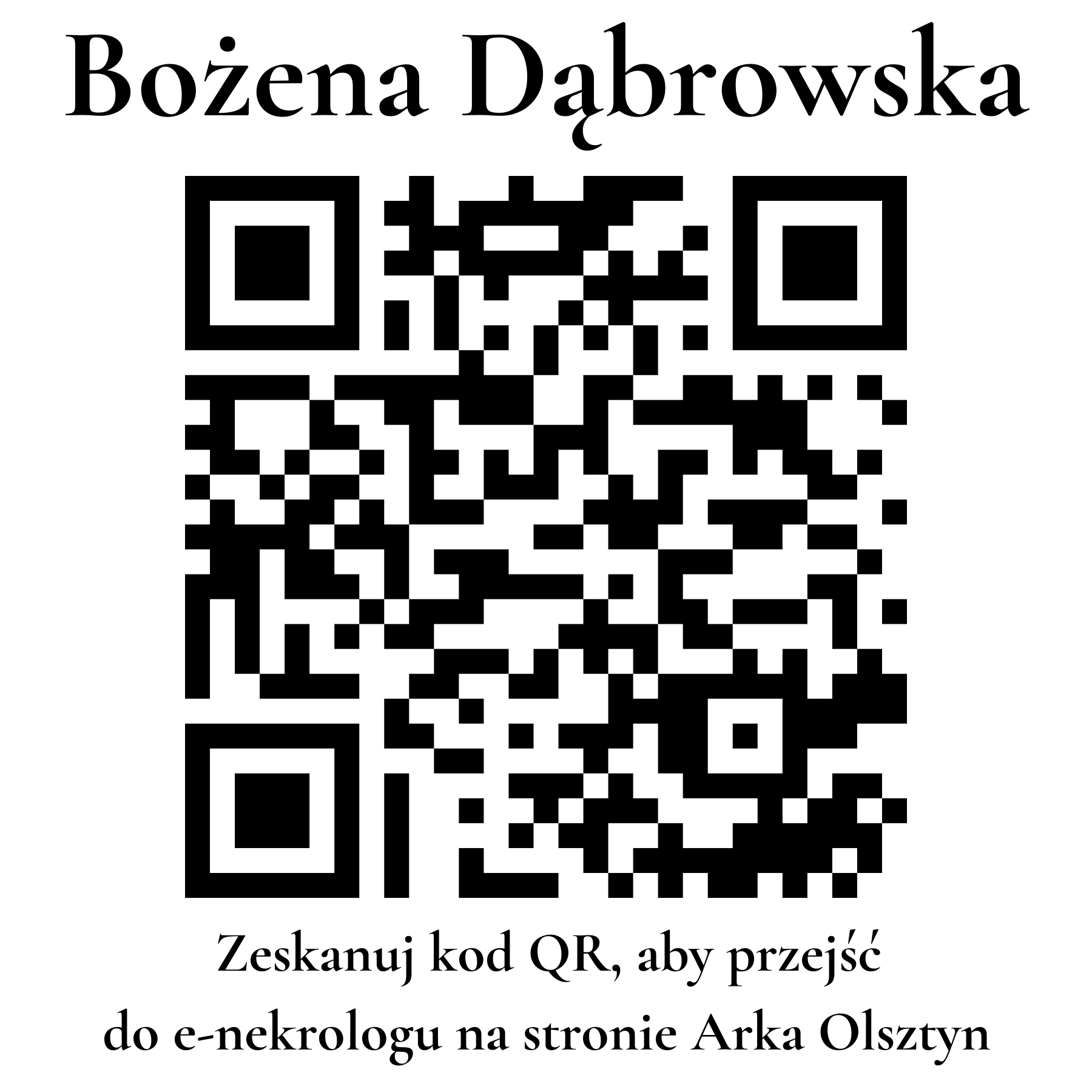 Z żalem informuję, że nie żyje Bożena Dąbrowska. Pogrzeb odbędzie się 13.10.2025. Lokalizacja: komunalny . Więcej informacji na stronie https://arkaolsztyn.pl/nekrolog/bozena-dabrowska/