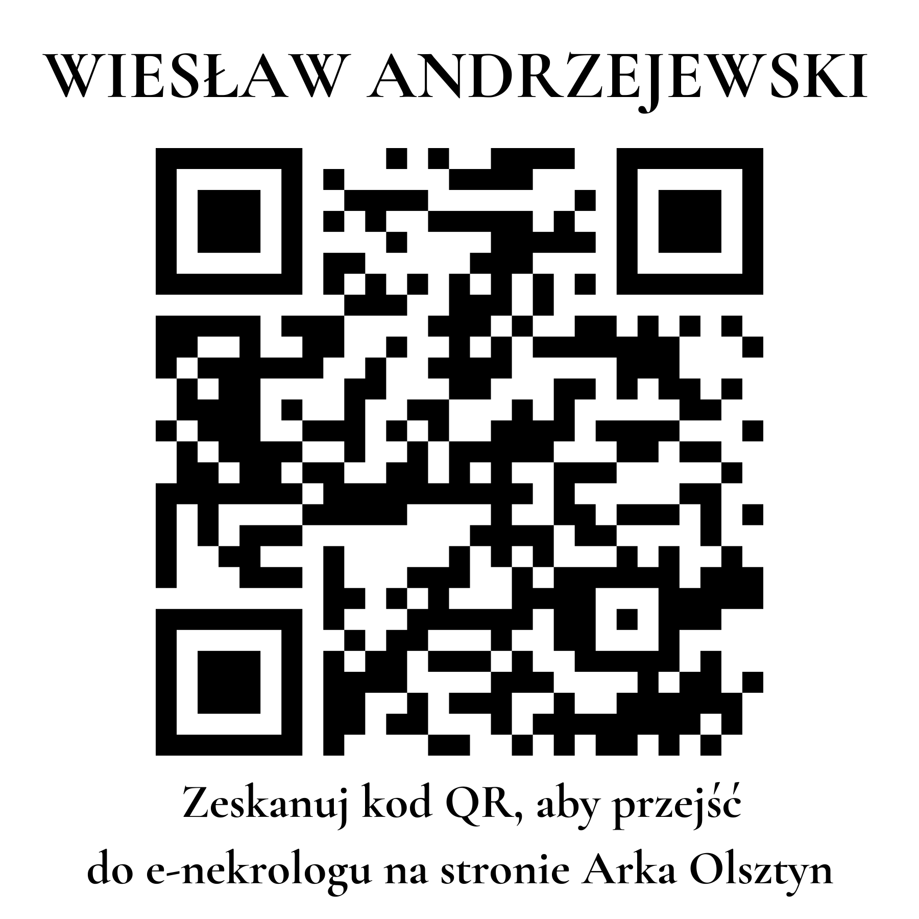 Z żalem informuję, że nie żyje WIESŁAW ANDRZEJEWSKI. Pogrzeb odbędzie się 15.11.2025. Lokalizacja: cmentarz komunalny . Więcej informacji na stronie https://arkaolsztyn.pl/nekrolog/wieslaw-andrzejewski/